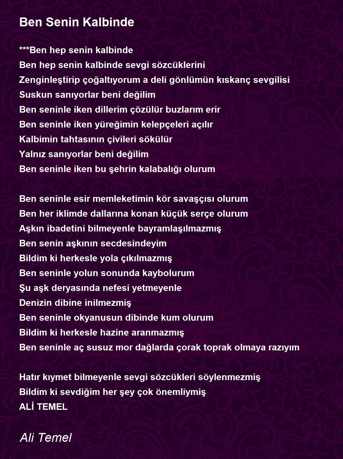 Ben hep senin kalbinde sevgi sözcüklerini