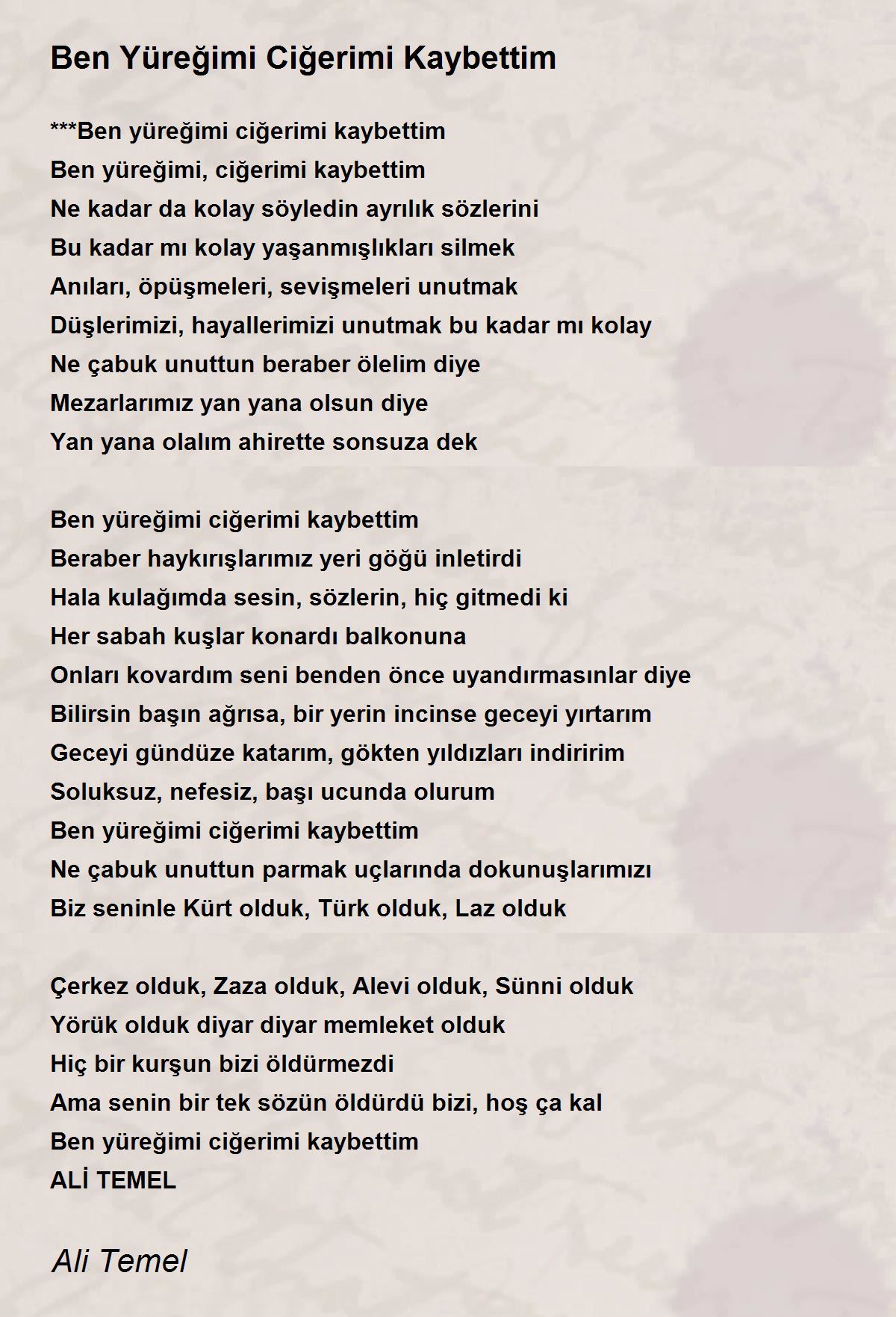 ***Ben yüreğimi ciğerimi kaybettim