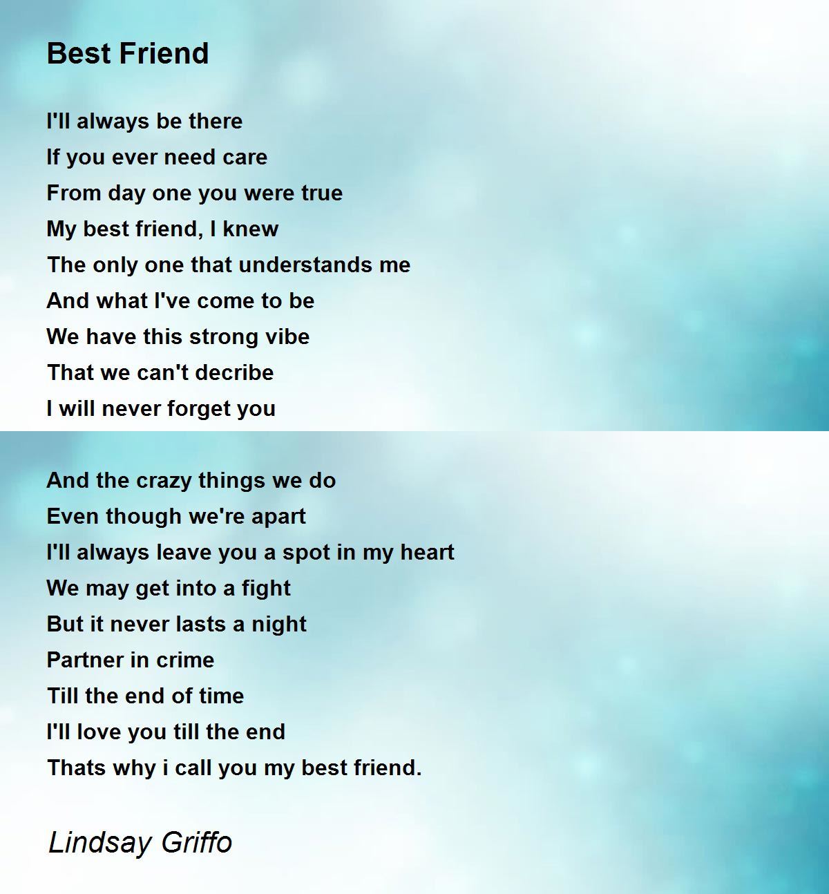 Very sincere... Comes from the heart... Everyone needs a best friend! ! ! Another great poem.