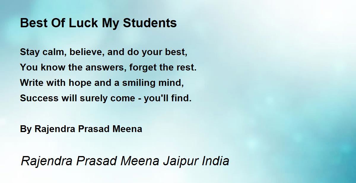 Stay calm, believe, and do your best,