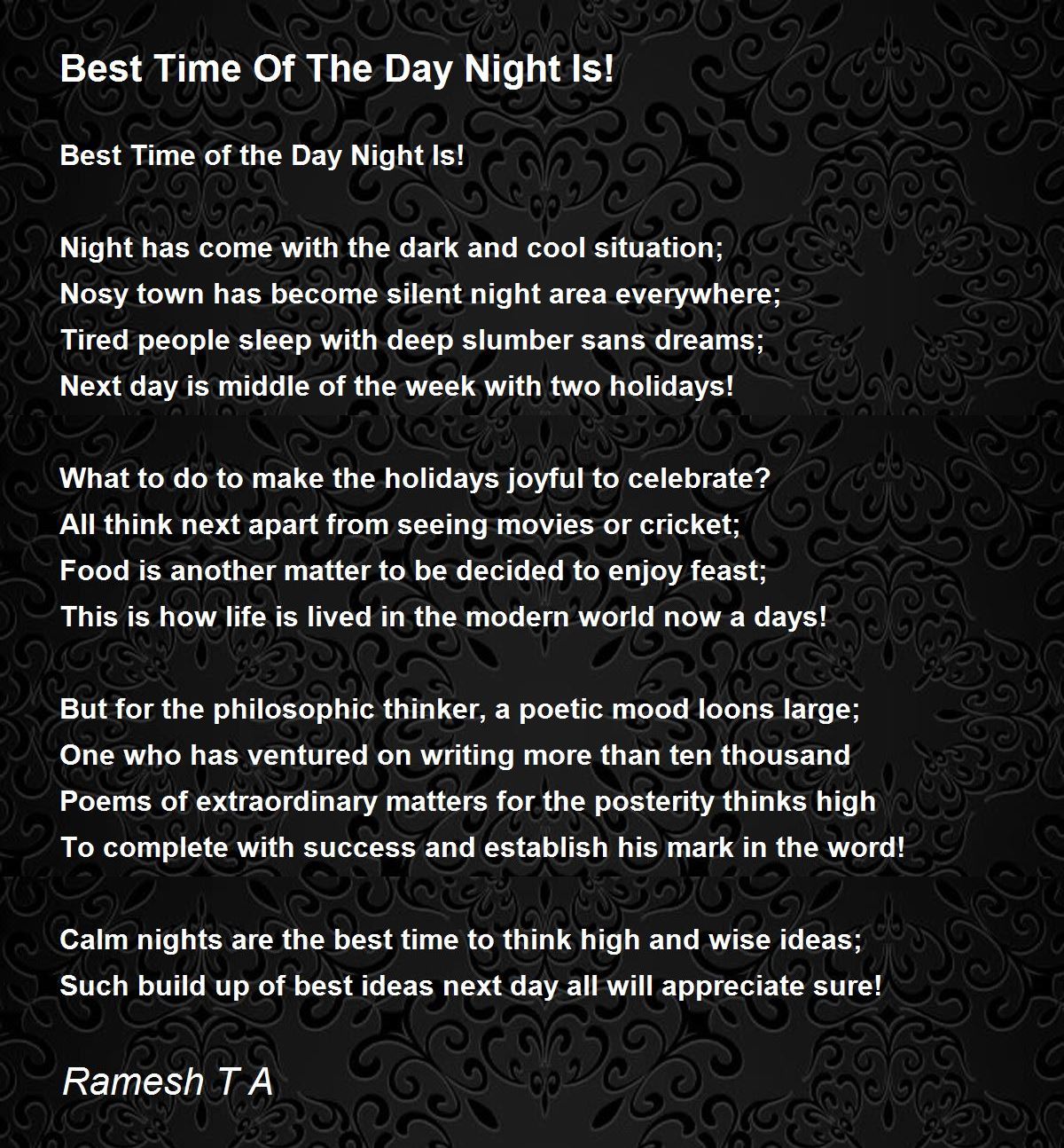Calm nights are the best time to think high and wise ideas; Such build up of best ideas next day all will appreciate sure!
