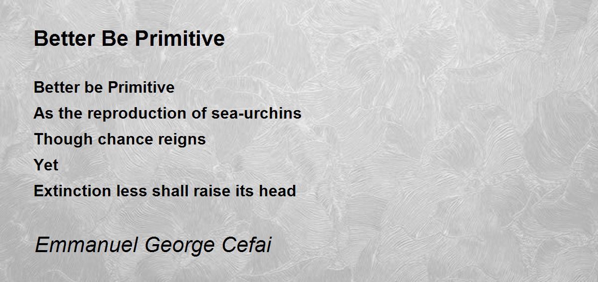 Better be Primitive As the reproduction of sea-urchins Though chance reigns Yet Extinction less shall raise its head