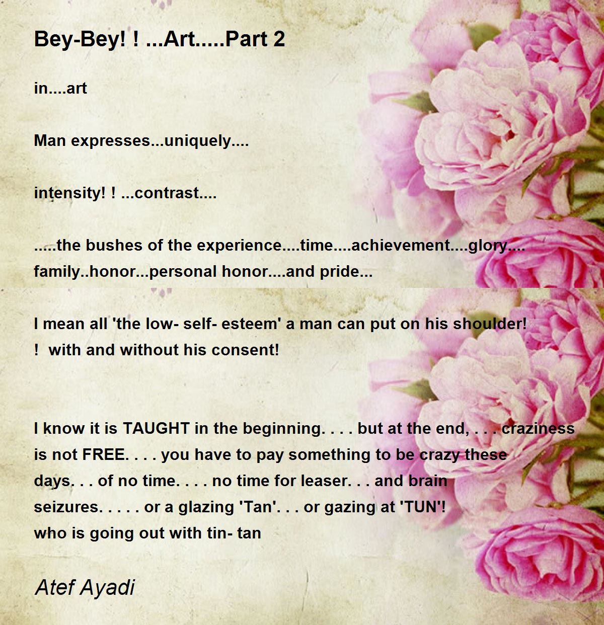 I know it is TAUGHT in the beginning....but at the end, ...craziness is not FREE....you have to pay something to be crazy these days...of no time....no time for leaser...and brain seizures.....or a glazing 'Tan'...or gazing at 'TUN'! who is going out with tin-tan