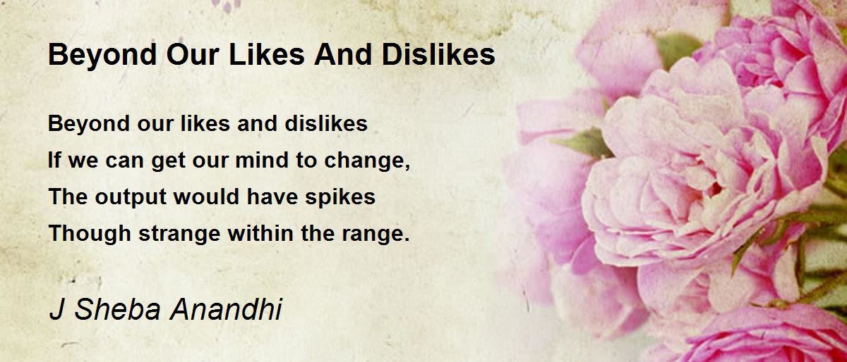 Beyond our likes and dislikes If we can get our mind to change, The output would have spikes Though strange within the range.