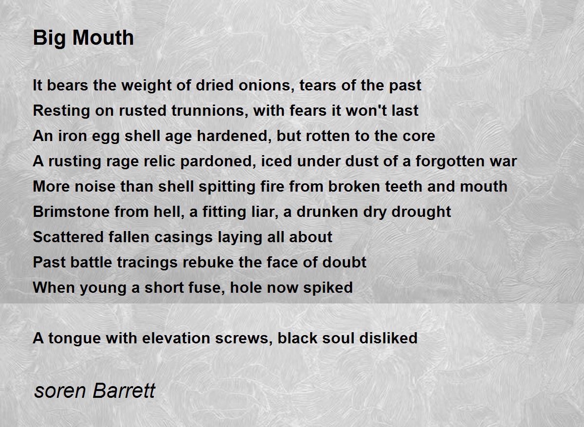 Brimstone from hell, a fitting liar, a drunken dry drought
