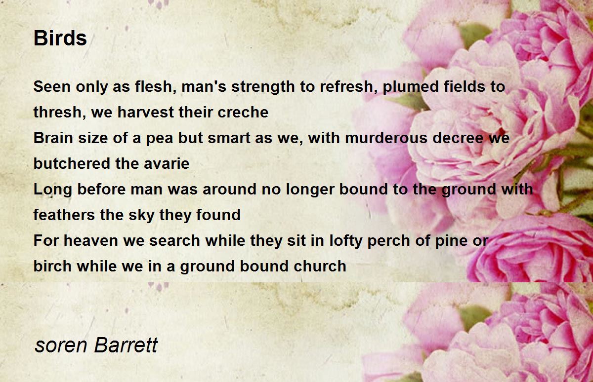 Seen only as flesh, man's strength to refresh, plumed fields to thresh, we harvest their creche