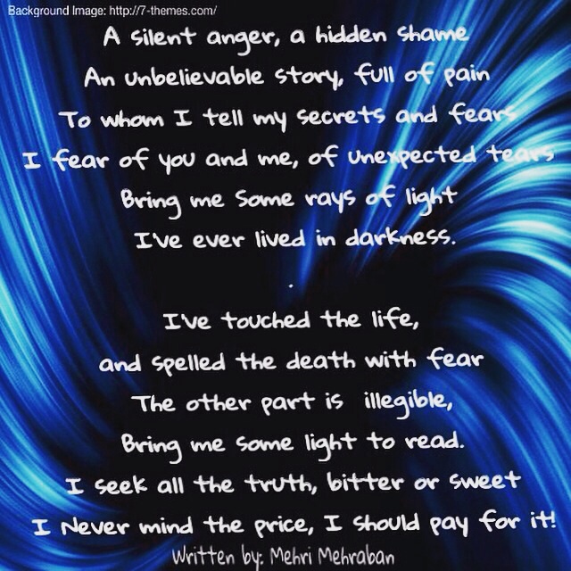 Hi Ms Mehri, Beautiful! A silent anger, a hidden shame An unbelievable story full of pain The pain in the words touches the heart, exquisite write. Enjoyed reading. Thank you for sharing.