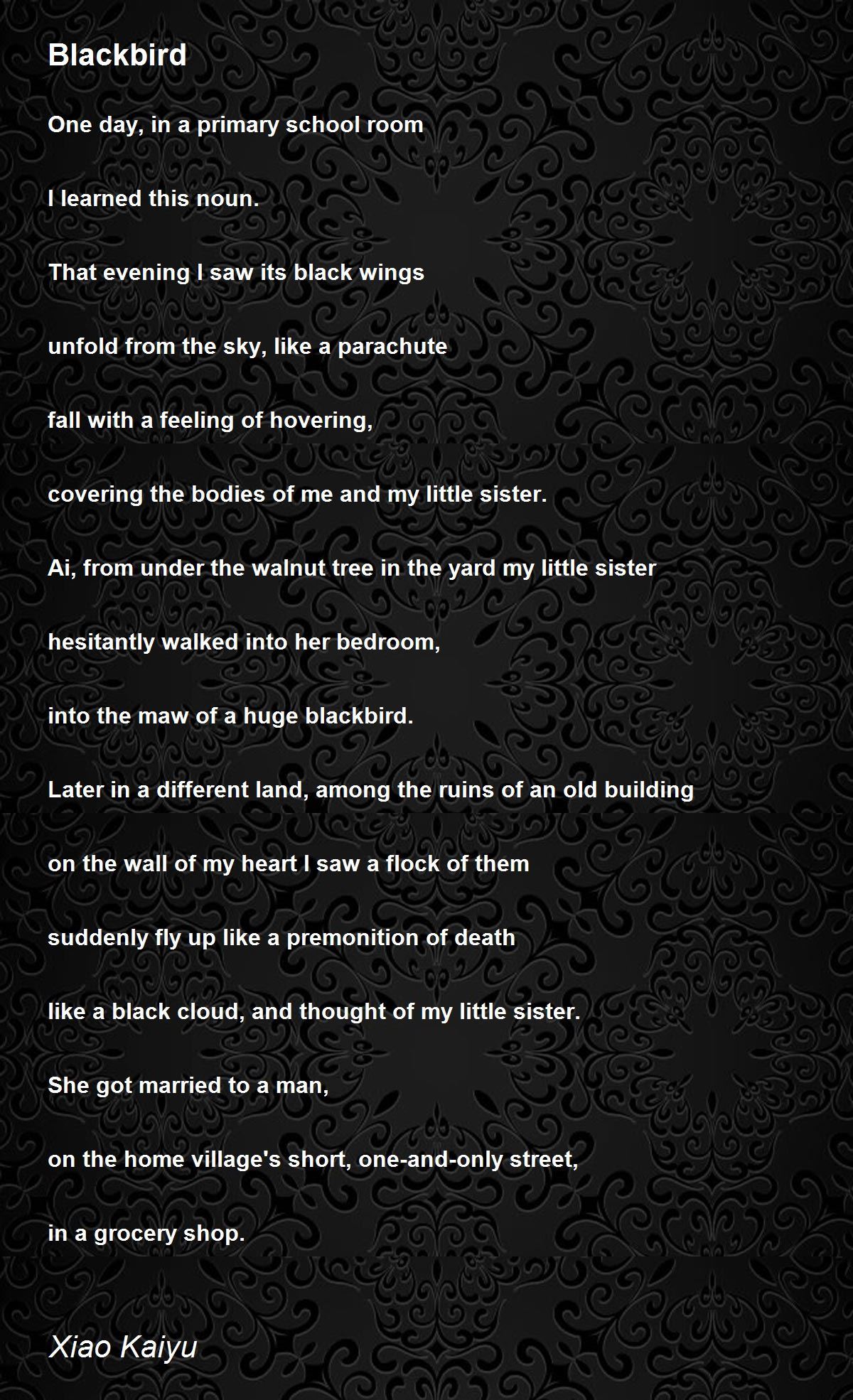 like a black cloud, and thought of my little sister.