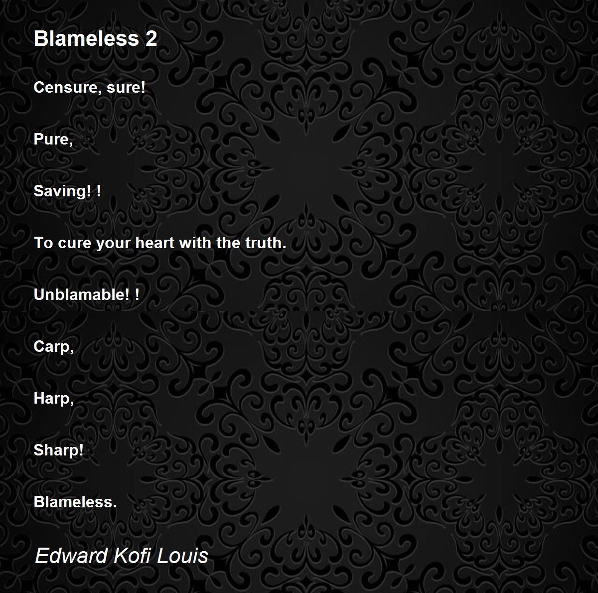 Harp, Sharp! Blameless. Thanks for your comment on my poem. Stay blessed always.