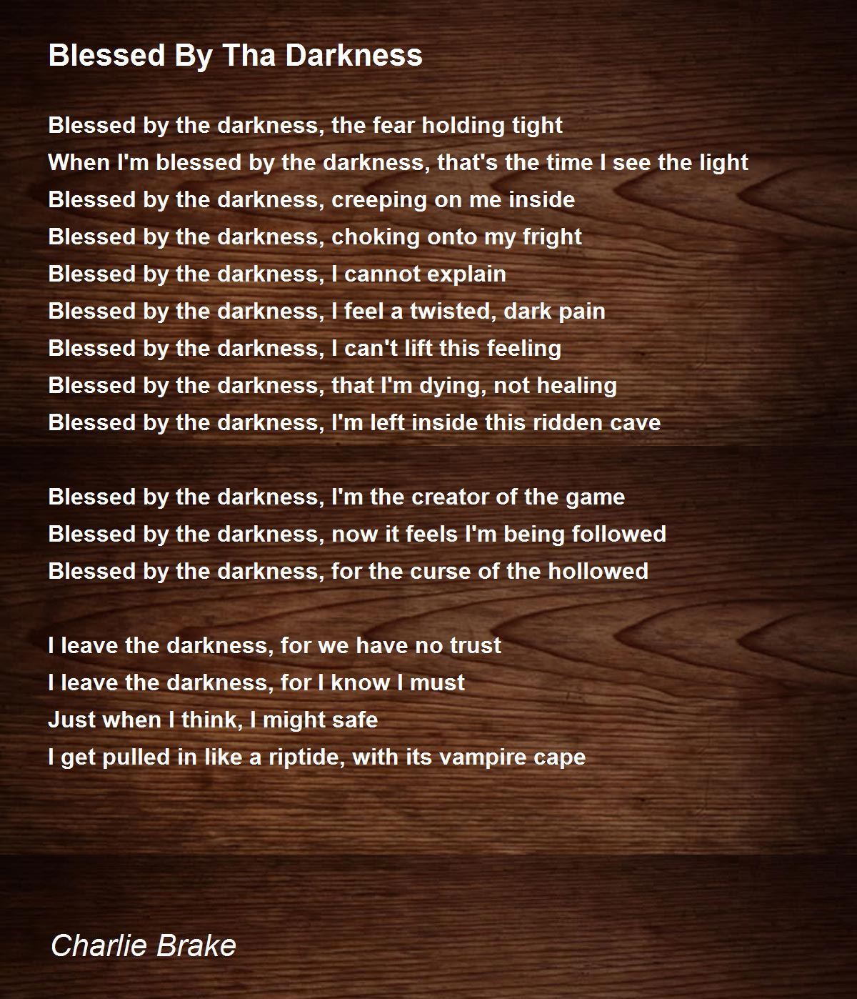 I found I skipped the Blessed by the darkness in each sentence in order to follow the story. It is a clever use of repetition to remind you of the theme.