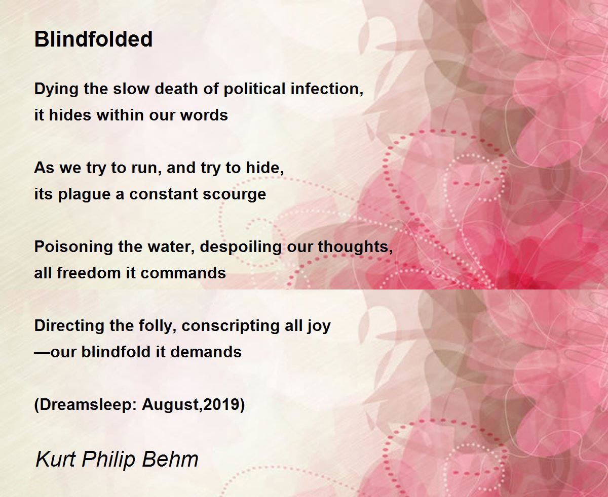 Poisoning the water, despoiling our thoughts, all freedom it commands Directing the folly, conscripting all joy —our blindfold it demands.....so touching and impressive with a nice theme. Beautiful poem. Thanks for sharing.