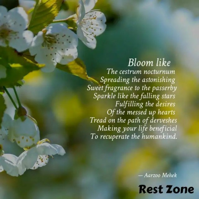 Tread on the path of derveshes To recuperate the humankind.... //.... Only a poet with a heart of gold and the beats of a Sufi can perceive such a sublime flower 'Fulfilling the desires' of one and all by its divine fragrance. You are indeed a great poet of nature. Thanks, Aarzoo ji.