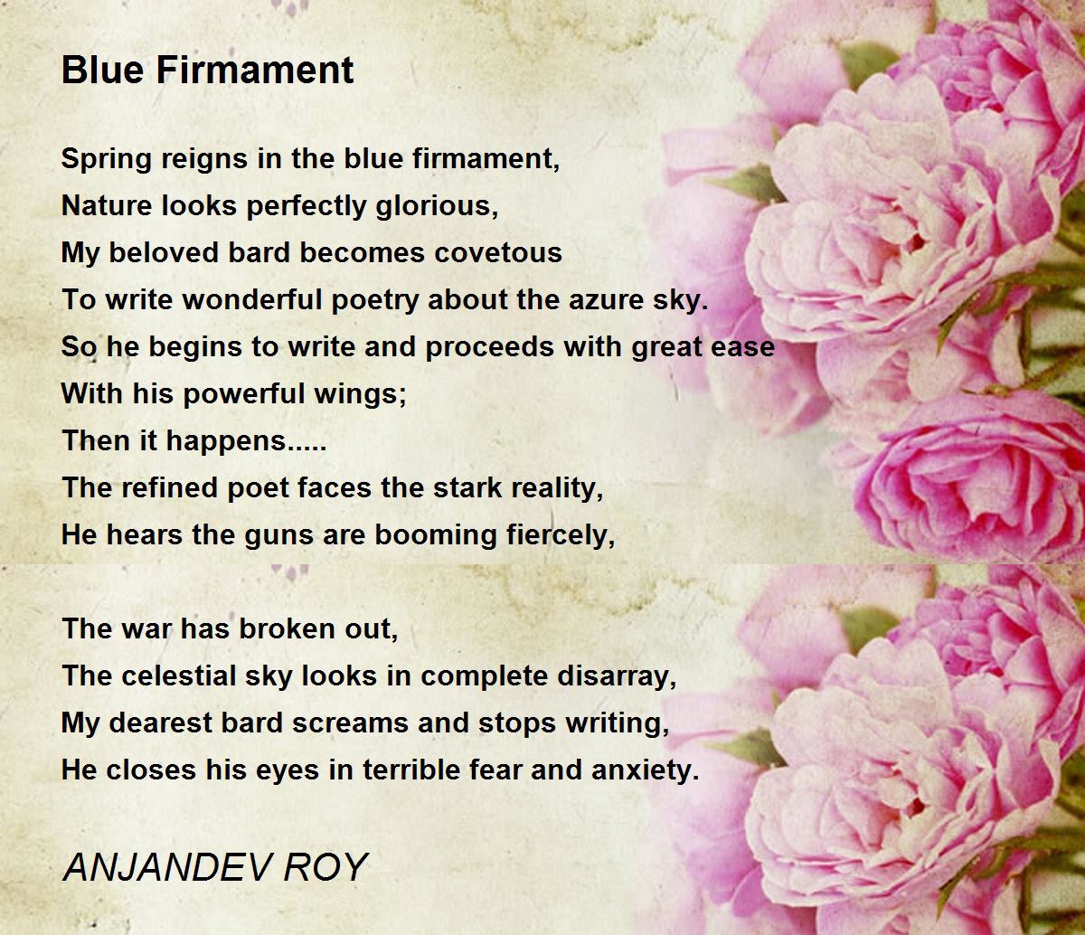 My beloved bard becomes covetous To write wonderful poetry about the azure sky. So he begins to write and proceeds with great ease.. wings, disarray, skies, , so many images that well up from your dear heart. you become very poetic dear Anjan. love reading u. tony