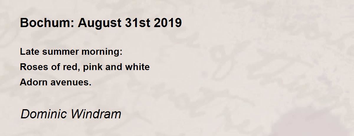 Late summer morning: Roses of red, pink and white Adorn avenues.