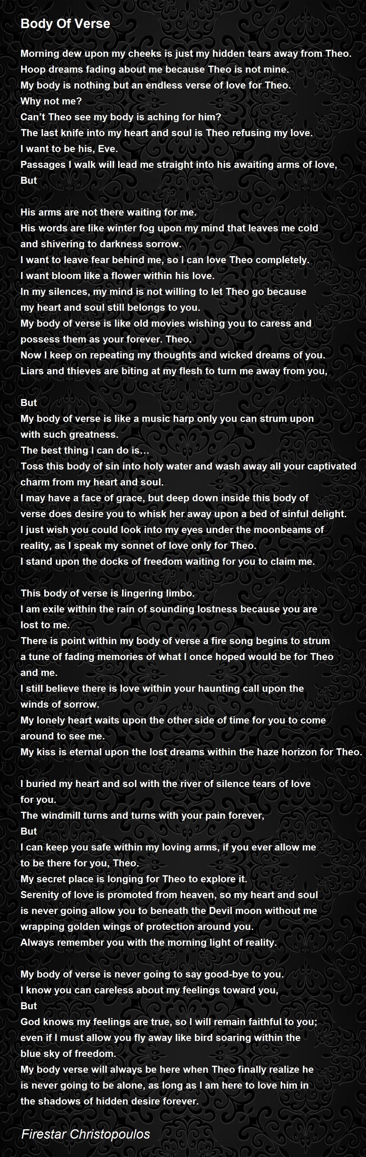 My body verse will always be here when Theo finally realize he is never going to be alone, as long as I am here to love him in the shadows of hidden desire forever.