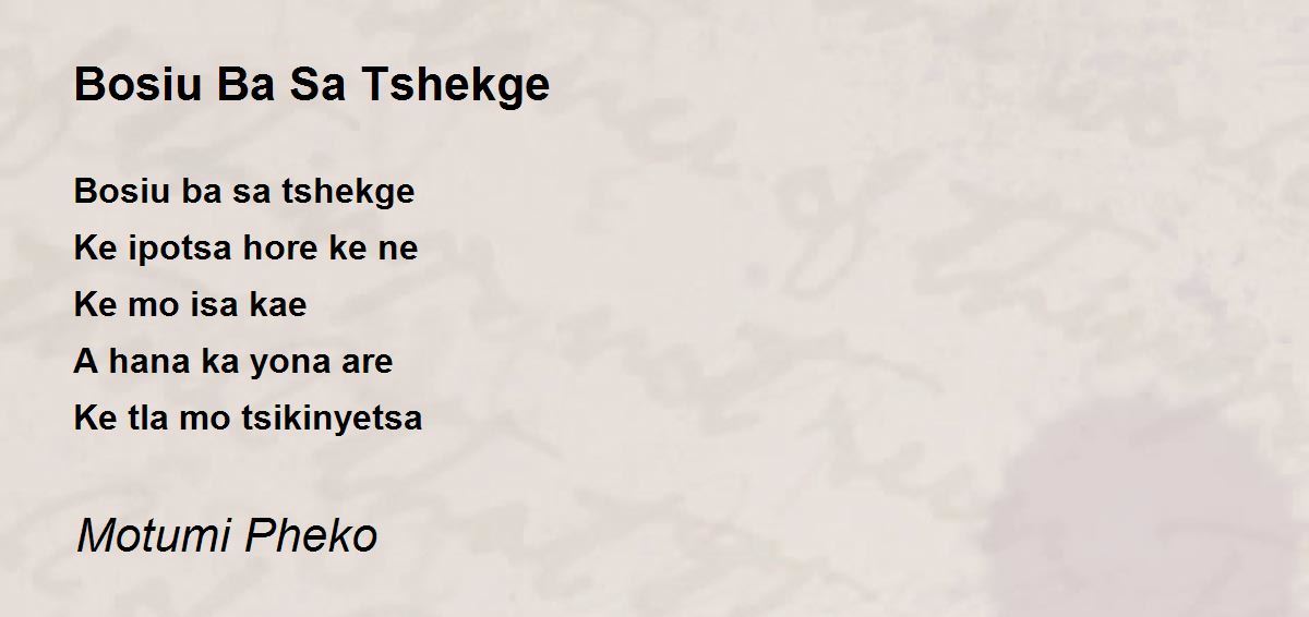 Bosiu ba sa tshekge Ke ipotsa hore ke neKe mo isa kae A hana ka yona areKe tla mo tsikinyetsa