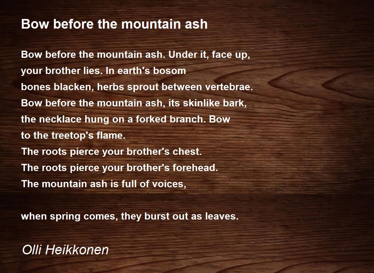Bow before the mountain ash. Under it, face up,