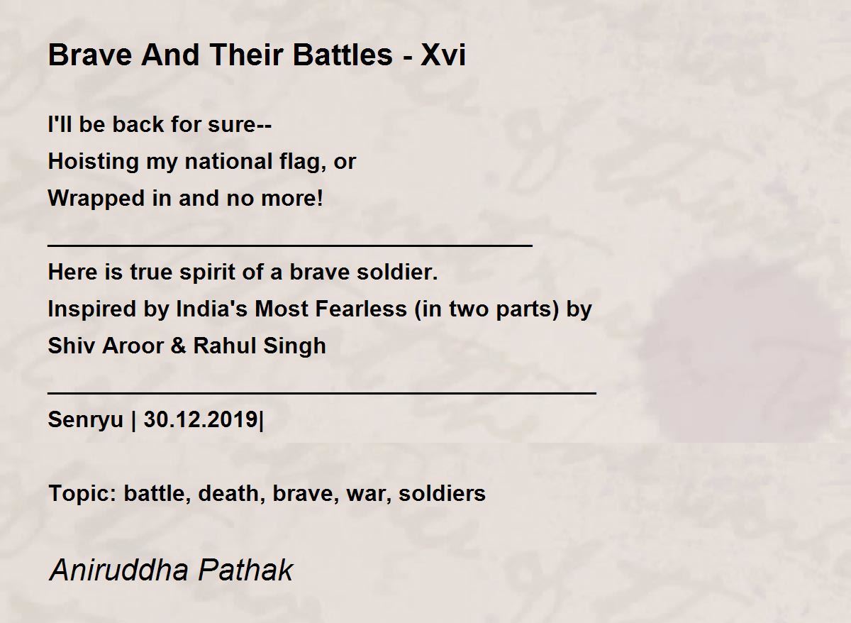 So touching! The words of the brave soldier who goes to battlefield to protect the country knowing very well that he may die there. My salute to brave soldiers who sacrifice their lives for the country.