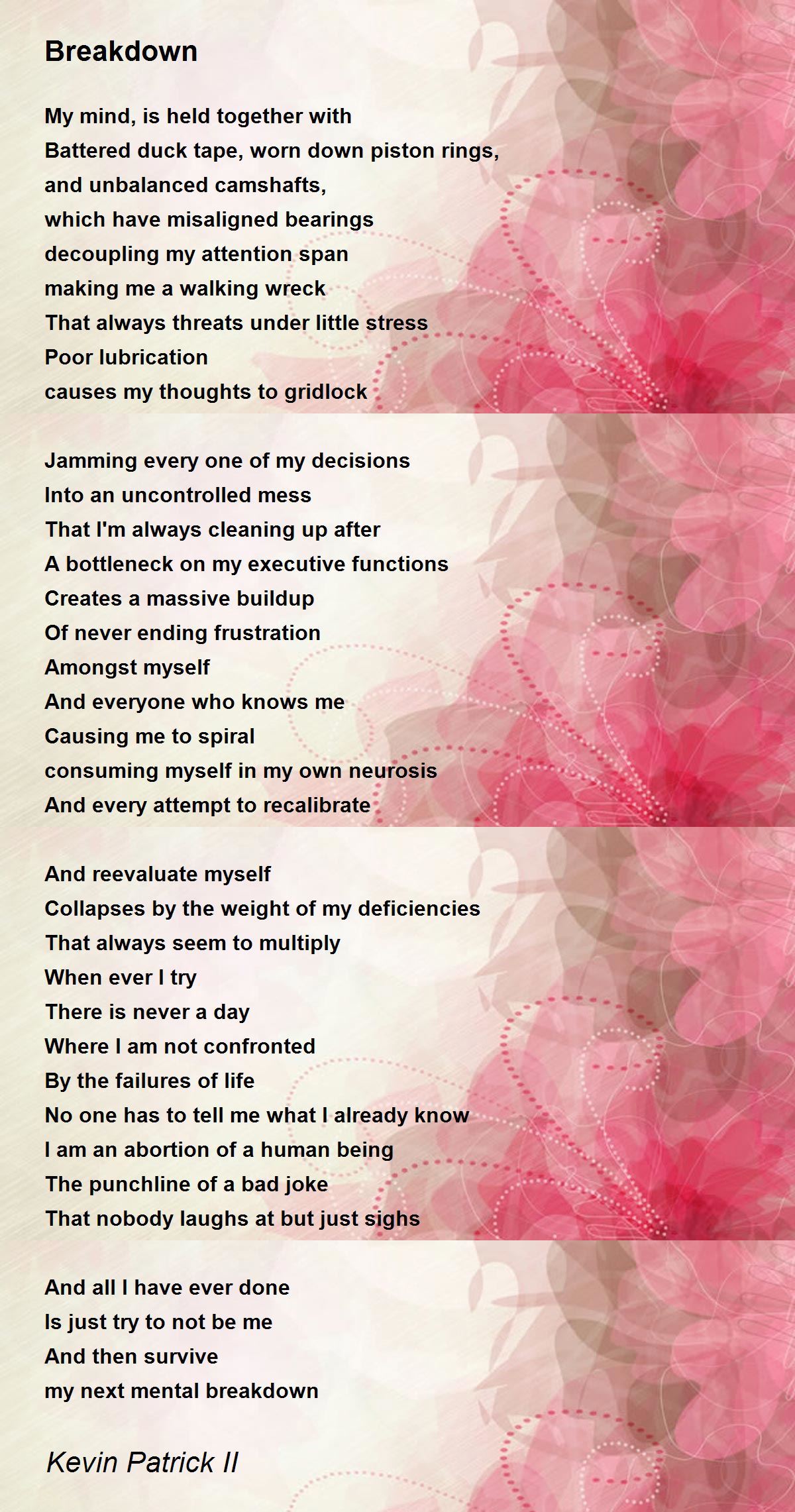 Collapses by the weight of my deficiencies
