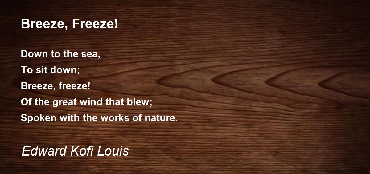 Down to the sea, To sit down; Breeze, freeze! Of the great wind that blew; Spoken with the works of nature.