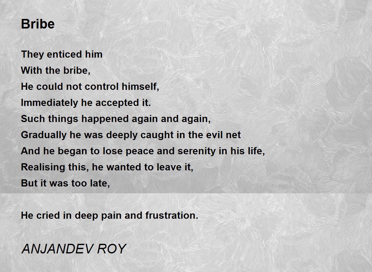 Bribe is an evil act! ! ! Thanks for sharing this poem with us.