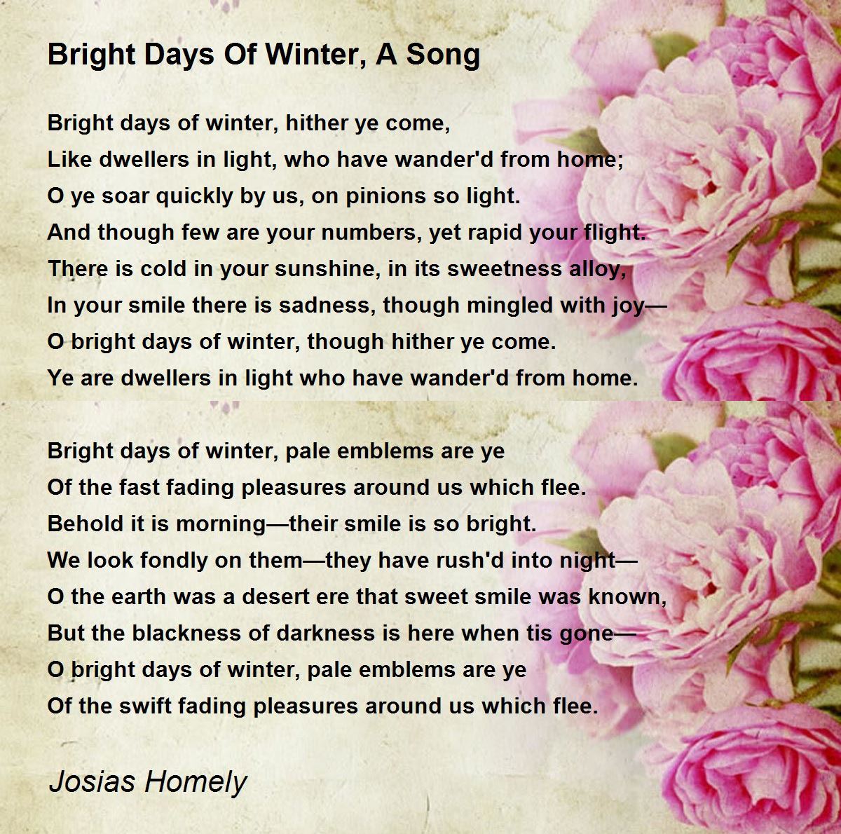 O bright days of winter, though hither ye come.