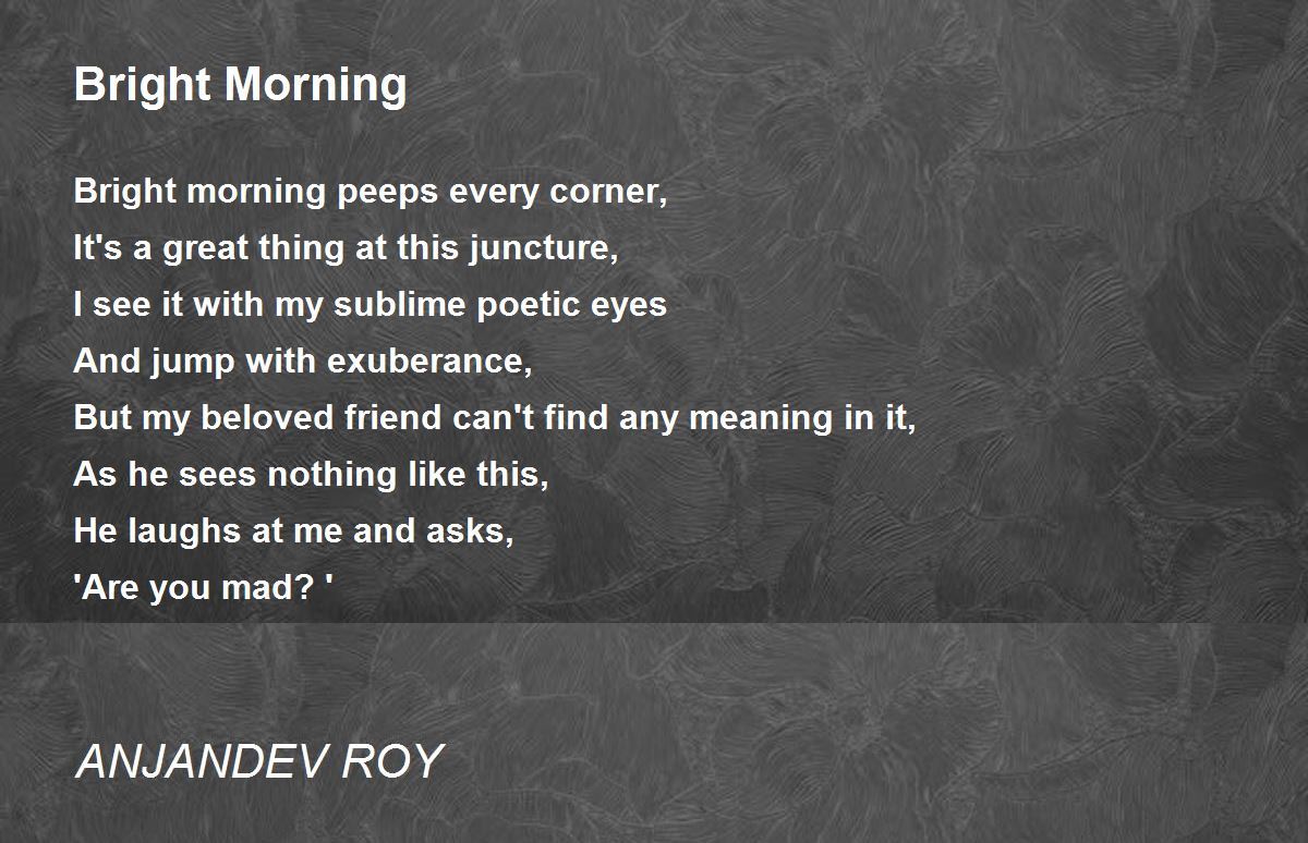 Beauty is in the eyes of the beholder! A good poem that has a bright morning!