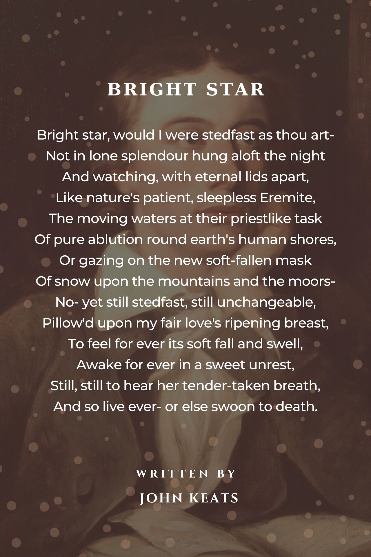 Keats is shining like a bright star for this poem, as well as for love, a bright star that dies not and fades not.