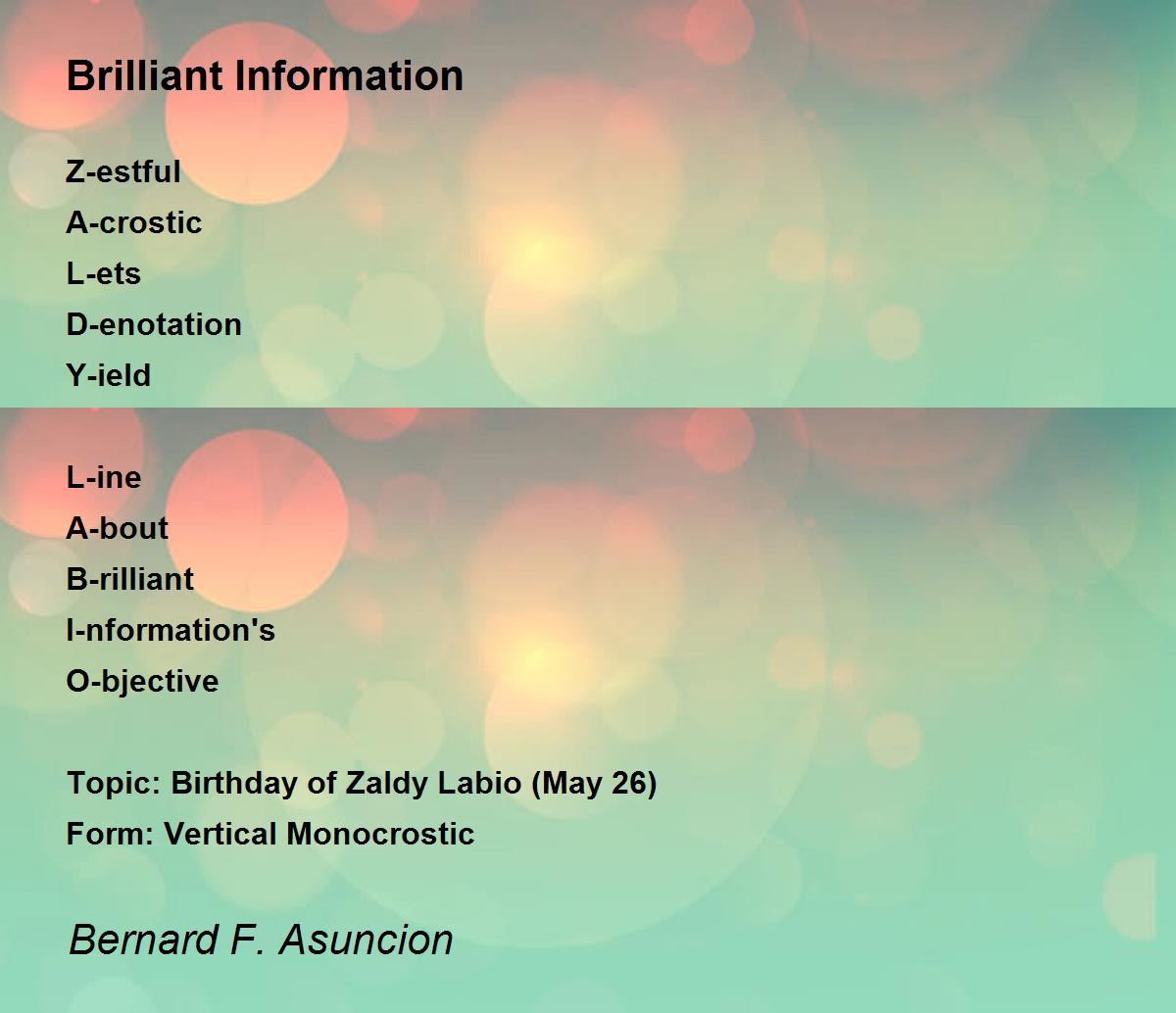 Topic: Birthday of Zaldy Labio (May 26)
