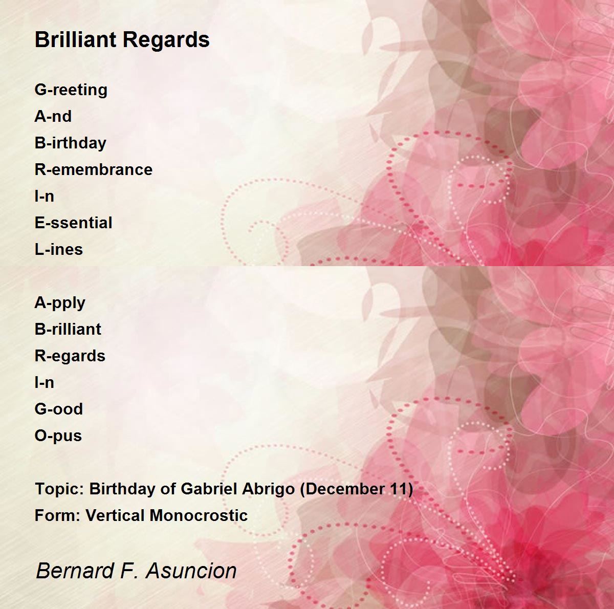 Topic: Birthday of Gabriel Abrigo (December 11)