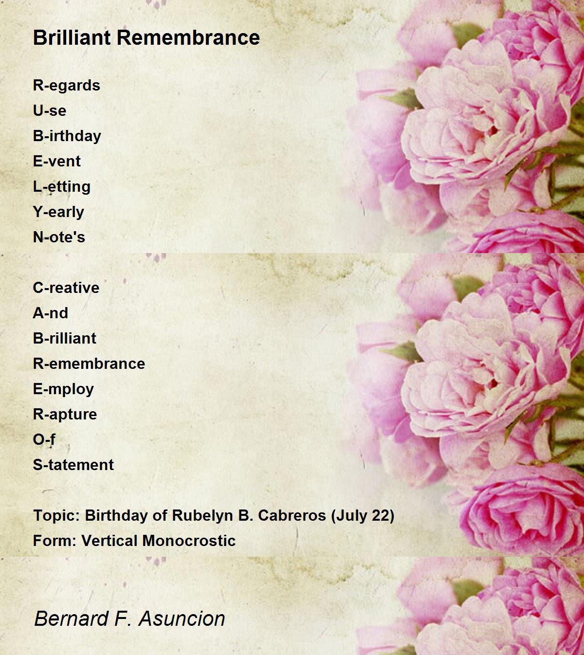 Topic: Birthday of Rubelyn B. Cabreros (July 22)