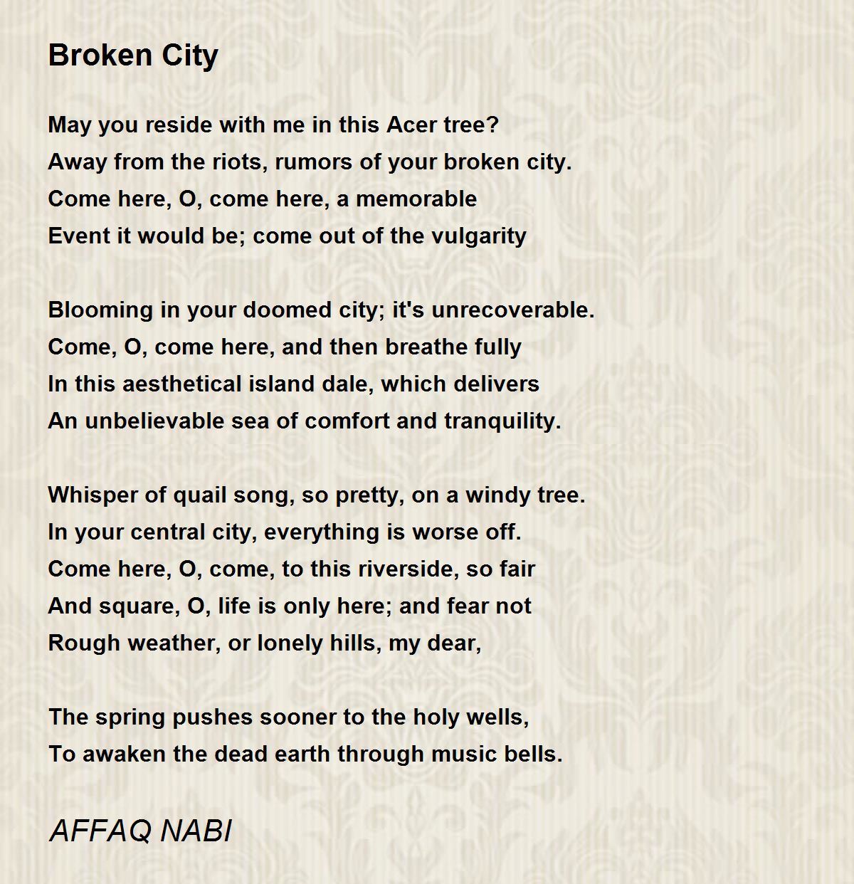 Away from the riots, rumors of your broken city.