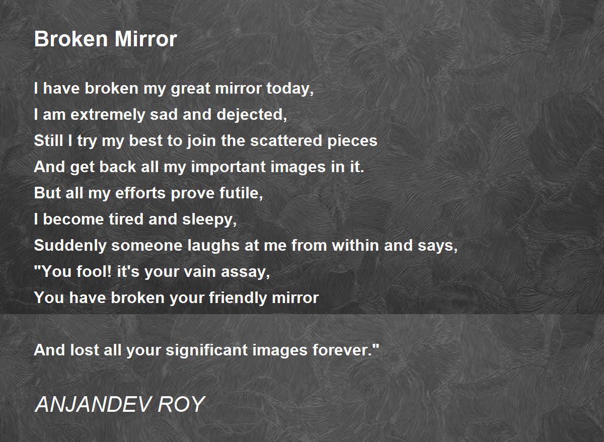 You fool! it's your vain assay, You have broken your friendly mirror And lost all your significant images forever." Beautiful poem