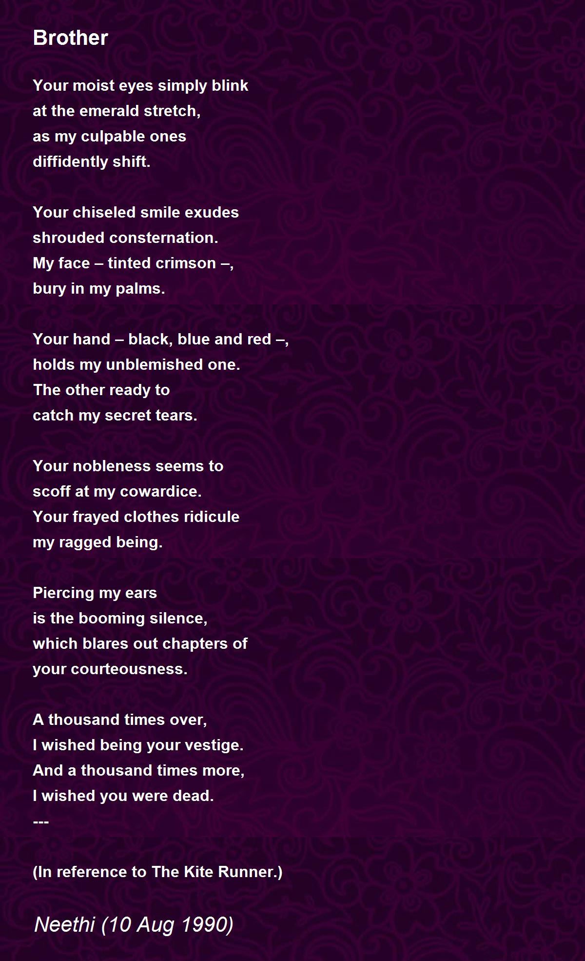 hey neethi! ! ! ... am born just 2 months before u! ! ! >..counld not understand anything..wot a vocabulary...gr8...pls add oxford dictionary links..! ! ! >...am just a beginner..ur an expert i feel...anyways...read ma poems and comment on them too.! ! ! ...bye.