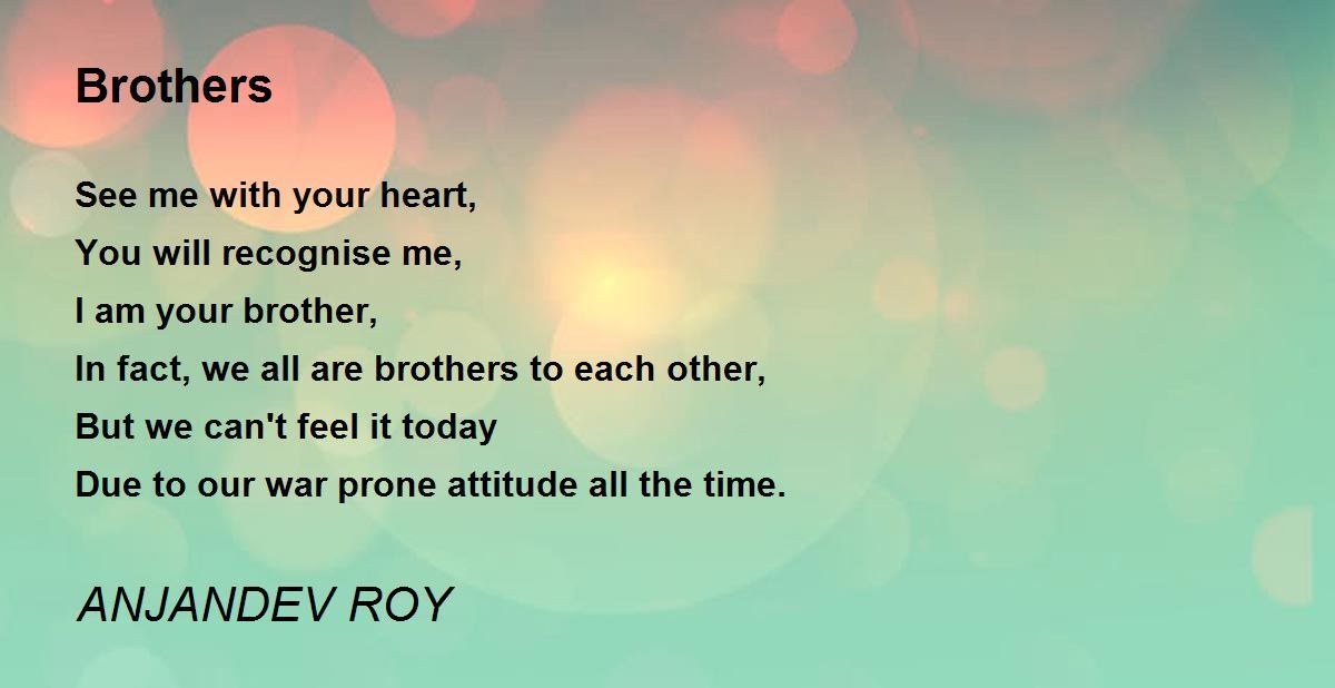 Brotherhood means cordiality, cordiality comes from heart. Outstanding expression and and amazing poem. Thanks a lot for sharing. I see it in the context of present situation in Kashmir.