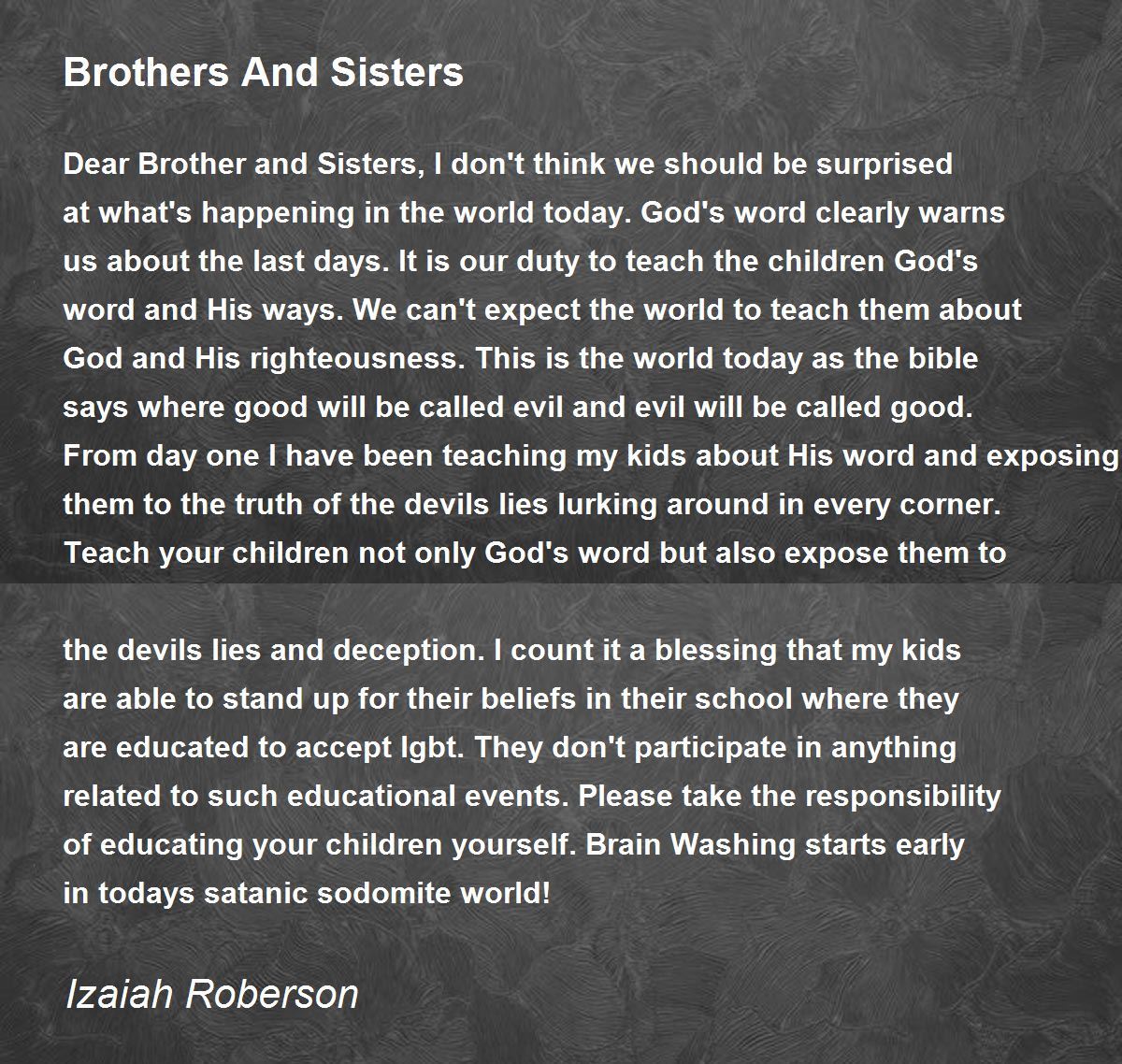 Dear Brother and Sisters, I don't think we should be surprised at what's happening in the world today. God's word clearly warns us about the last days. It is our duty to teach the children God's word and His ways. We can't expect the world to teach them about God and His righteousness. This is the world today as the bible says where good will be called evil and evil will be called good. From day one I have been teaching my kids about His word and exposing them to the truth of the devils lies lurking around in every corner. Teach your children not only God's word but also expose them to the devils lies and deception. I count it a blessing that my kids are able to stand up for their beliefs in their school where they are educated to accept lgbt. They don't participate in anything related to such educational events. Please take the responsibility of educating your children yourself.Brain Washing starts early in todays satanic sodomite world!