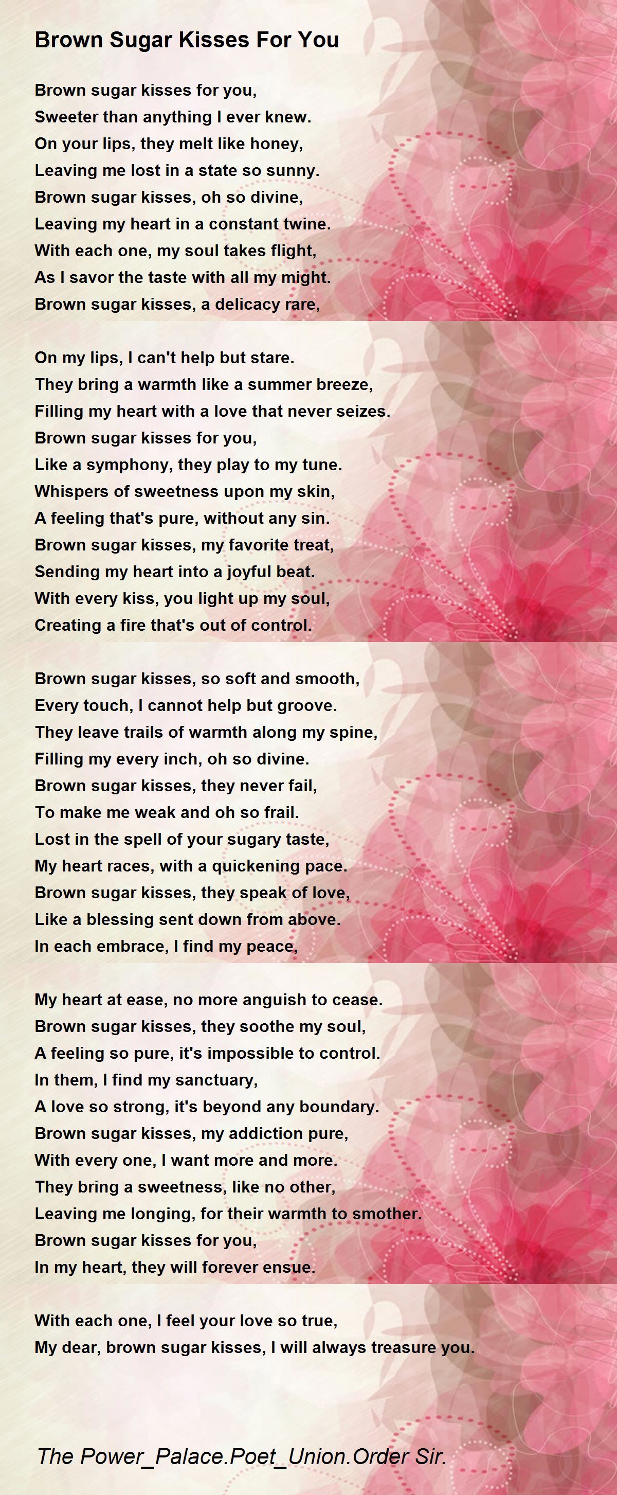 Brown sugar kisses, they speak of love,