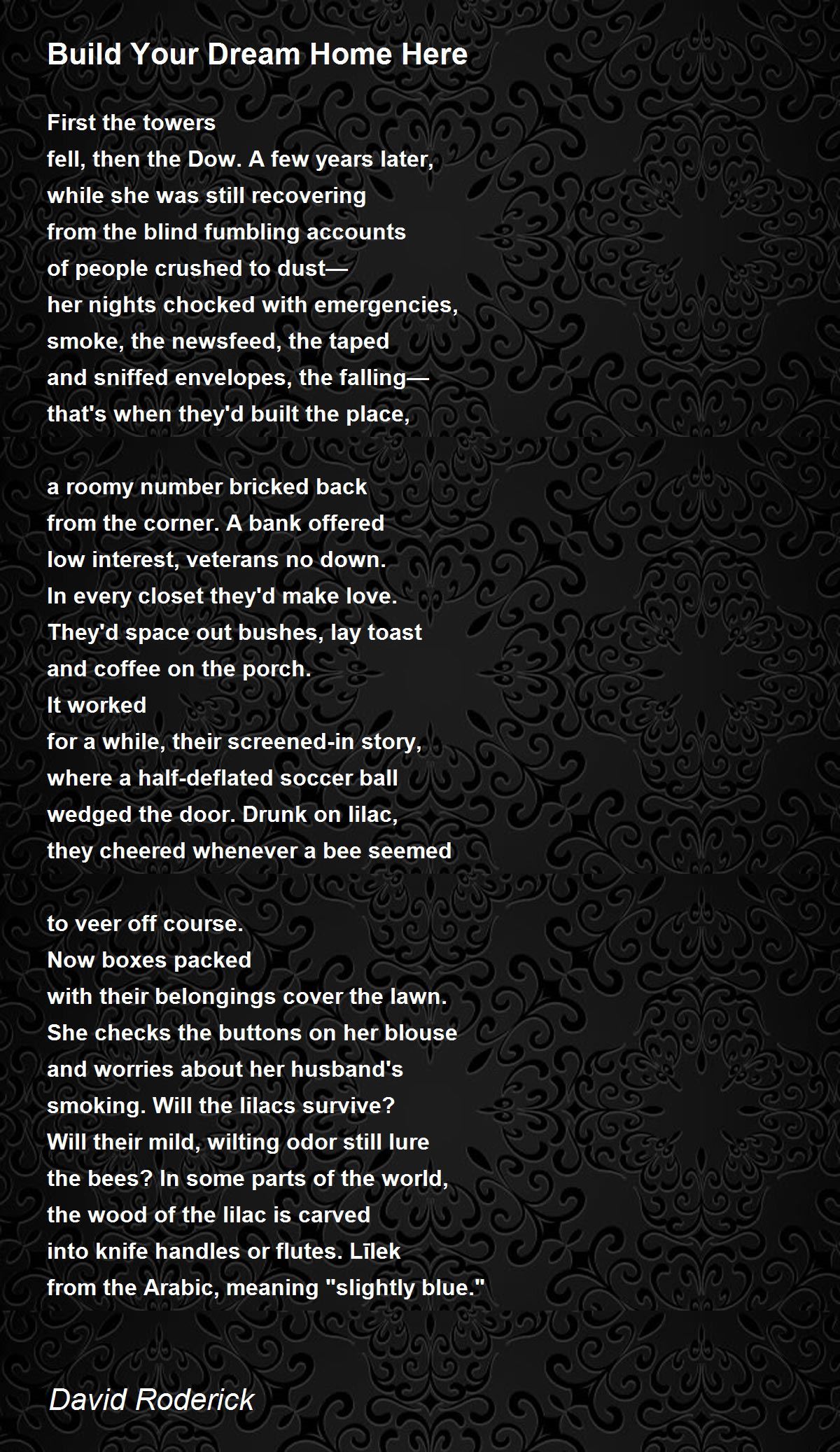 wedged the door. Drunk on lilac,