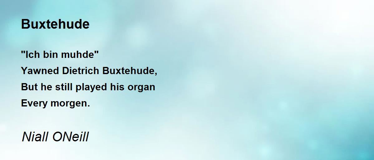 "Ich bin muhde" Yawned Dietrich Buxtehude, But he still played his organ Every morgen.