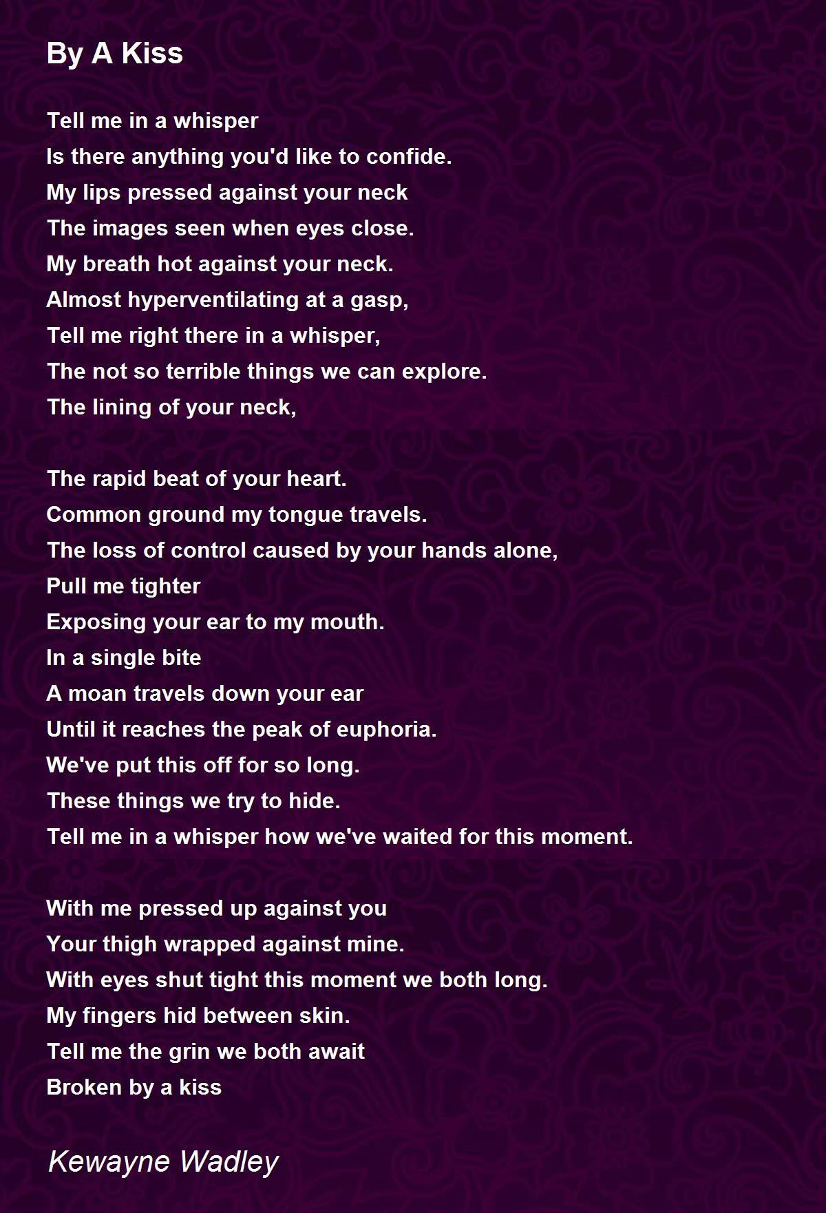 ell me in a whisper how we've waited for this moment. With me pressed up against you Your thigh wrapped against mine.. emotional, full of passion. love. thank u dear poet. tony
