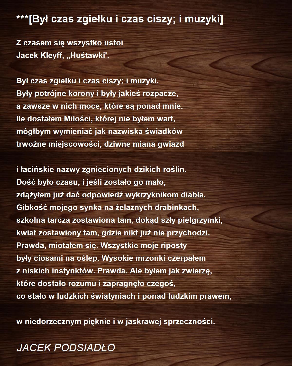 Był czas zgiełku i czas ciszy; i muzyki.