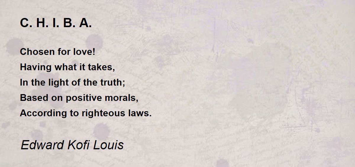Chosen for love! Having what it takes, In the light of the truth; Based on positive morals, According to righteous laws.