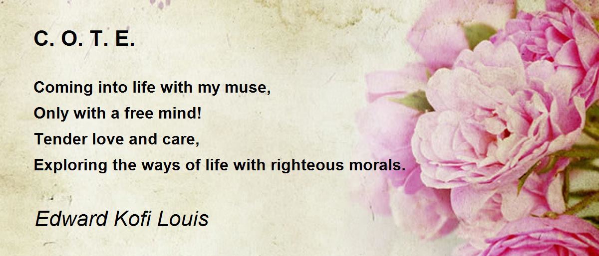 Coming into life with my muse, Only with a free mind! Tender love and care, Exploring the ways of life with righteous morals.