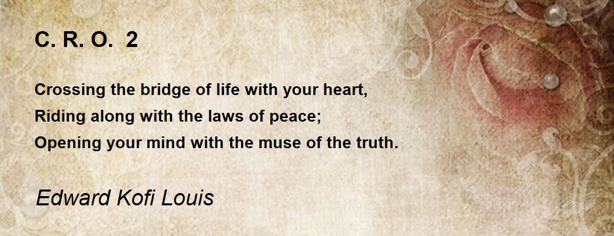 Crossing the bridge of life with your heart, Riding along with the laws of peace; Opening your mind with the muse of the truth.