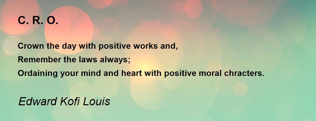 Crown the day with positive works and, Remember the laws always; Ordaining your mind and heart with positive moral chracters.