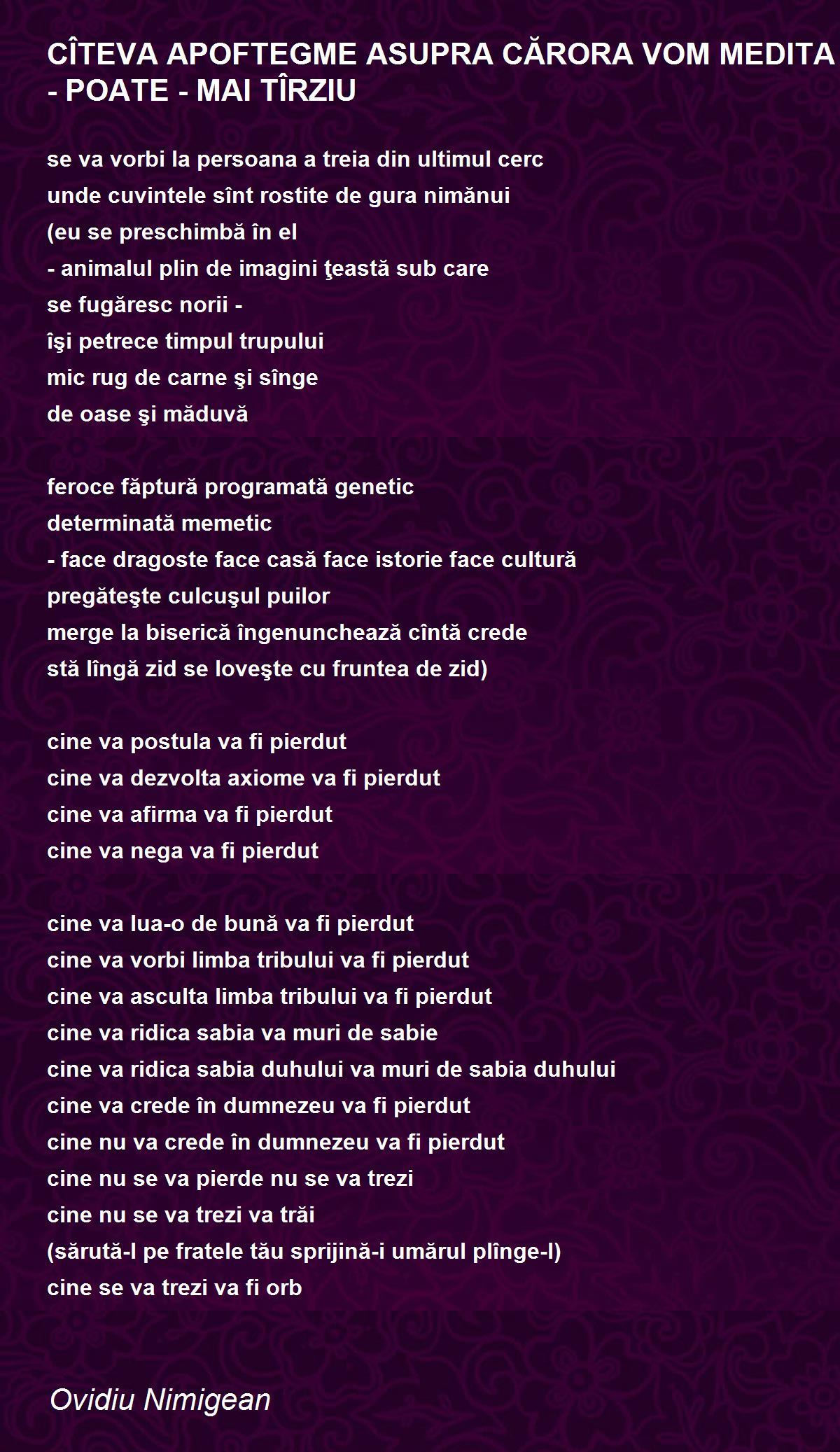 (sărută-l pe fratele tău sprijină-i umărul plînge-l)