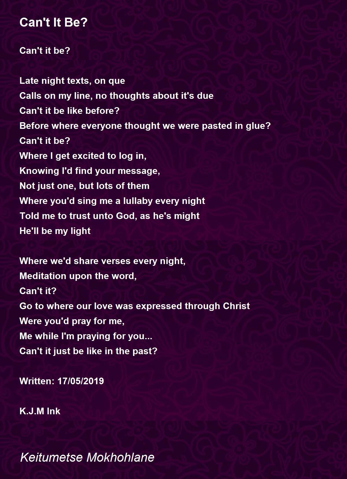 Can't it be?