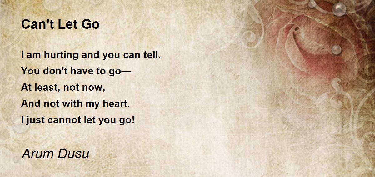 I am hurting and you can tell. You don't have to go— At least, not now, And not with my heart. I just cannot let you go!