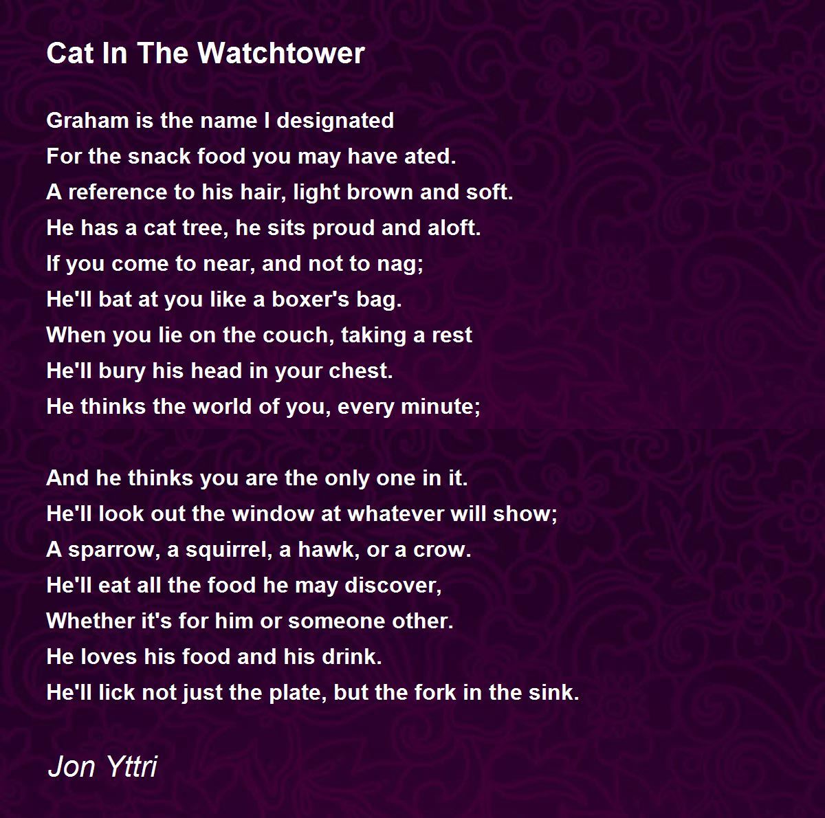 He has a cat tree, he sits proud and aloft.