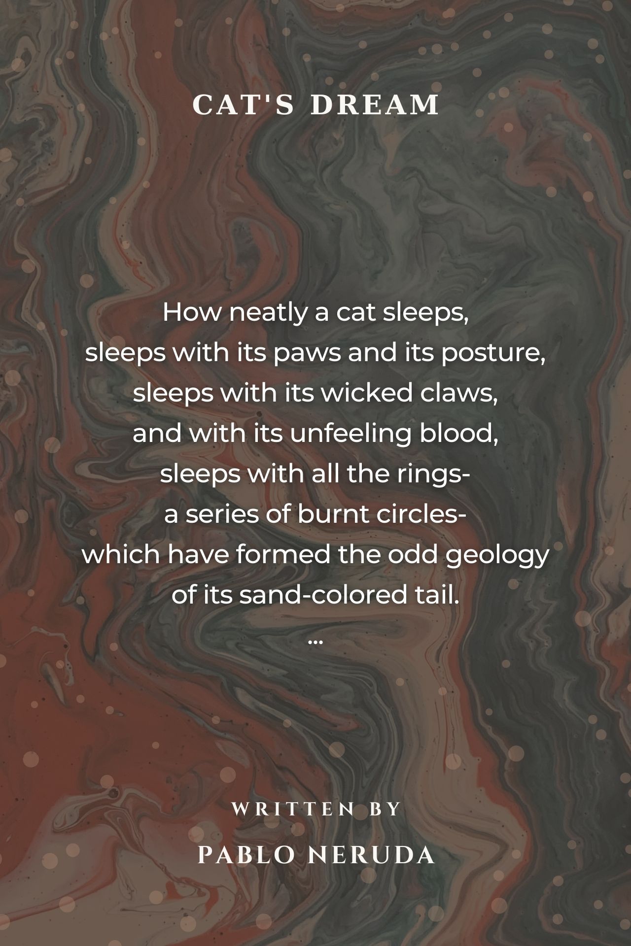 The sleep patern and the life style traits of cat had fascinated the poet so much that he dreams of getting into slumber in the same way. A great poem deserving modern poem of the Day.